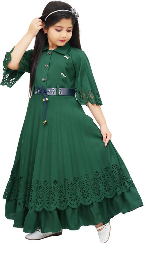 Mmaisha Girls Maxi/Full Length Party Dress (Green, 3/4 Sleeve)