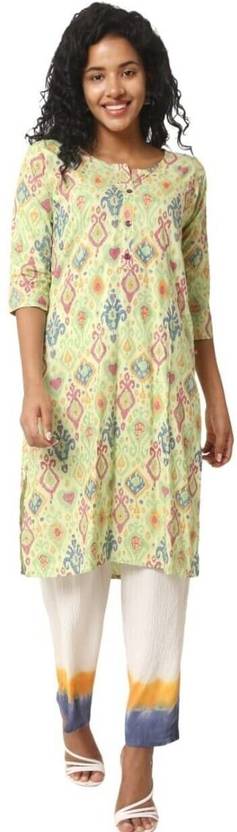 MMD ENTERPRISE Women Abstract Straight Kurta (Light Green)