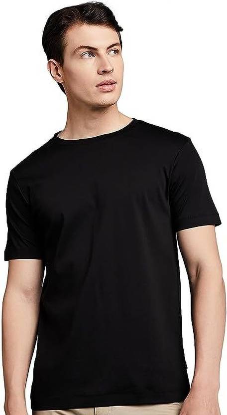 Men Solid Round Neck Pure Cotton Black T-Shirt