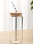 MMTSWorld Wooden Lid Mojito Glass Sipper Tumbler with Straw for Green Tea Glass Coffee Mug (540 ml)