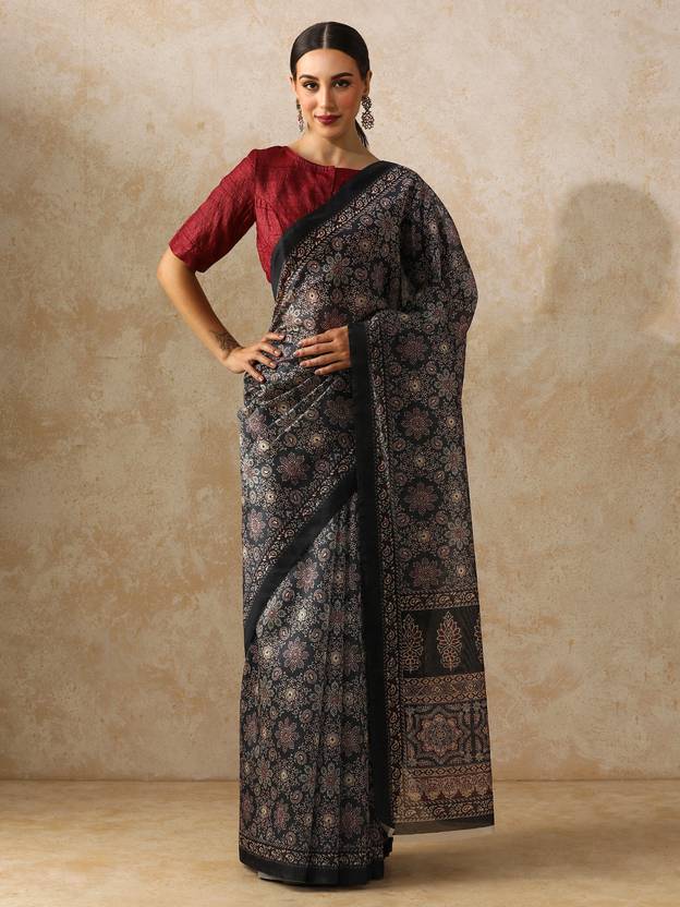 Moara Printed Daily Wear Silk Blend Saree (Black)