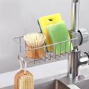 The faucet holder can store sponge, scrubber, scouring pad, soap, dish towel, dish-washing liquid, etc. You will never worry to find where your sponge/soap is. Keep your sink organized. Very space-saving. With the hallow bottom, your sponge will dry faster. Keeping away from bacterium and other dirties. A Must-Have in your home. Sponge holder can be mounted in kitchen, shower room and balcony. Perfect to store and organized bath accessories, wash supplies, kitchen gadgets, etc anywhere you needed to tidy up storage. Made of stainless steel and ABS material, rust-proof, sturdy, durable and easy to clean.