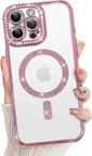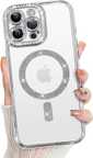 MOBIKIT for iPhone 16 Pro style with this cute, glittery magnetic case! Crafted with a soft, clear TPU bumper, it offers reliable protection while showcasing your phone's sleek design. The luxurious bling rhinestone accents add a touch of glamour, perfect for fashion-forward women and girls. Compatible with MagSafe and featuring a camera lens cover, this case combines functionality with flair. Indulge in a dazzling accessory that keeps your device safe and chic. Please note that measurements are provided in metric units.