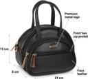 This stylish handbag from Mochi is crafted from premium faux leather, designed to be both functional and chic. The bag features a spacious main compartment and two front zipped pockets for storing your valuables, ensuring easy organization. With comfortable top handles and an adjustable detachable sling, this handbag offers versatility and comfort for everyday use. The branded lining and premium metal logo add an extra touch of elegance to the design.