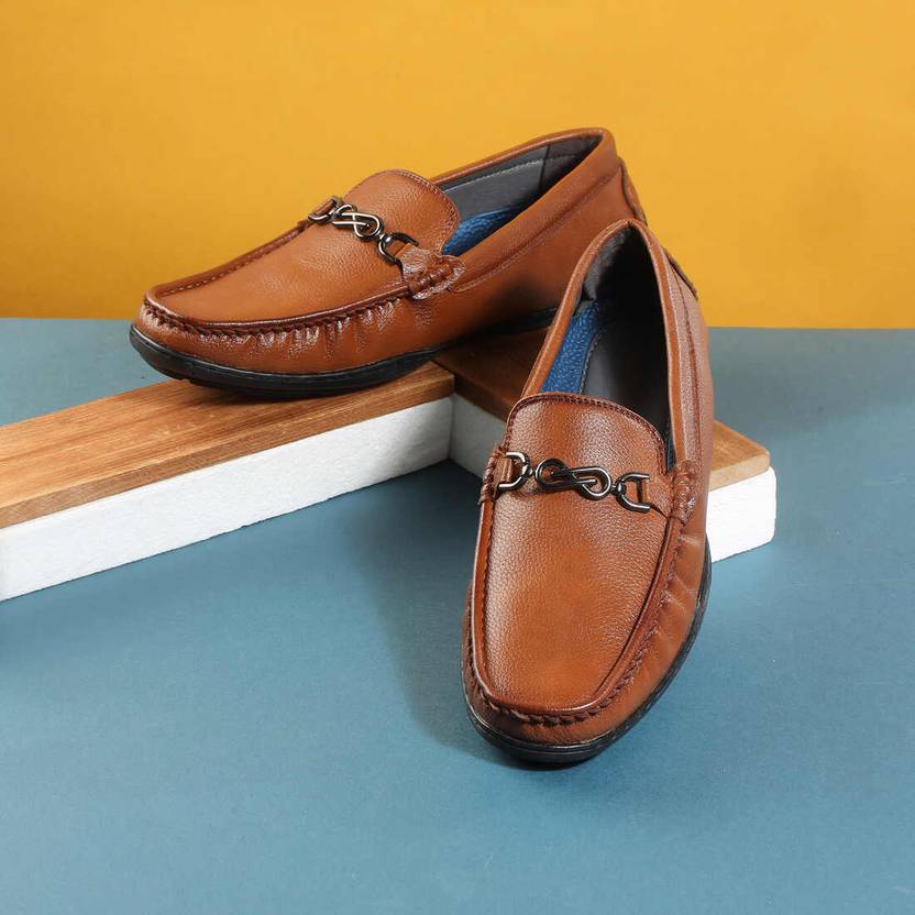 These casual driving shoes from Mochi feature a sleek faux leather design with a stylish chain buckle detail on the vamp. The anti-skid outsole and contrasting insole add both functionality and flair to your everyday style.