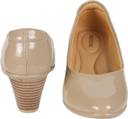 These elegant court shoes from Mochi feature a sleek glossy finish and a specially contoured padded insole for ultimate foot comfort. The mid heel adds the perfect lift, making them ideal for formal occasions.