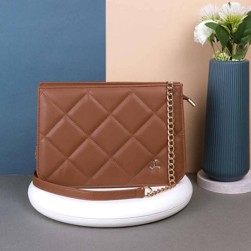 This sleek and stylish sling bag from Mochi is a perfect addition to your casual wardrobe. Made from faux leather with a premium metal logo, this bag offers a spacious main compartment to keep your essentials organized. It also features a zipped pocket for securing valuables and a comfortable premium metal sling chain that adds a touch of elegance. With its zipper closure and branded lining, this bag is perfect for casual outings, keeping you chic and functional at the same time.