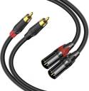Unbalanced Dual XLR Male to Dual RCA Male HiFi Audio Cable, one side is 2 x XLR Male plugs, the other side is RCA Male plugs, it can be split into two so that you have two individual RCA to XLR cables; Unbalanced connection, the Pin 2 of the XLR is wired to the RCA plug, and Pin 1 and Pin 3 of the XLR is combined to the sleeve of both RCA plugs