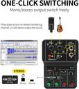 2. Stereo/Mono Output Mixer: The perfect recording assistant, wireless 2 channel audio interface controller dj mixer is the perfect way to mix audio from mp3, mic and power amplifier connected devices. Use the switch to switch between 2-channel mono and 1-channel stereo.