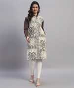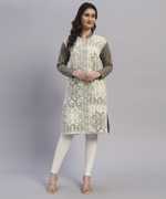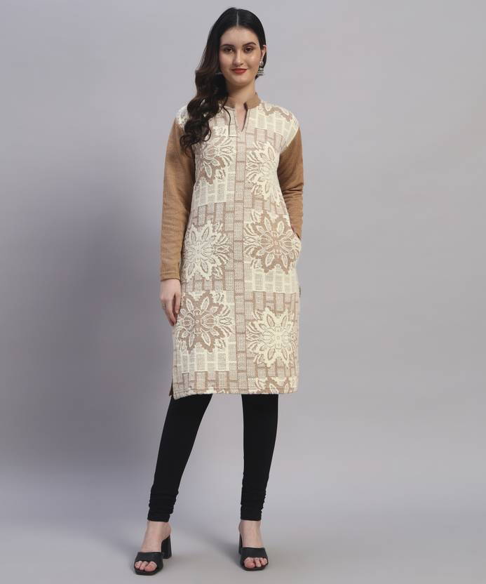 MOD YOUNG Women Embroidered Wool A-line Kurta  (Beige)