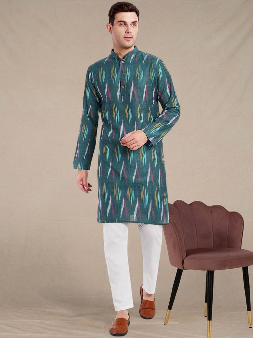 Our kurta Pajama set brings together quality and style into one simple piece. A completely traditional Indian design, this kurta set is handmade from 100% cotton and feels as light as air to treat you to stylish luxury with each and every wear. Like traditional kurtas worn in India, this kurta pajama set includes both a top and a bottom. Loose fitting sleeves and slits along the sides allow for an easy fit and let air circulate freely through the garment. The pant included in this kurta pajama set has a relaxed fit through the seat and legs for absolute comfort. Loose comfortable fitting makes it a great wear. This kurta pajama set is worn in both summer and winter. Comes with complimentary free size trouser (pajama) in soft fabric with drawstring in waist. Slip on the set to wear to bed as breathable, soft pajamas in any season. The ways that you can wear this luxurious two-piece set are endless, you can mix and match the pieces with other things in your wardrobe.