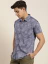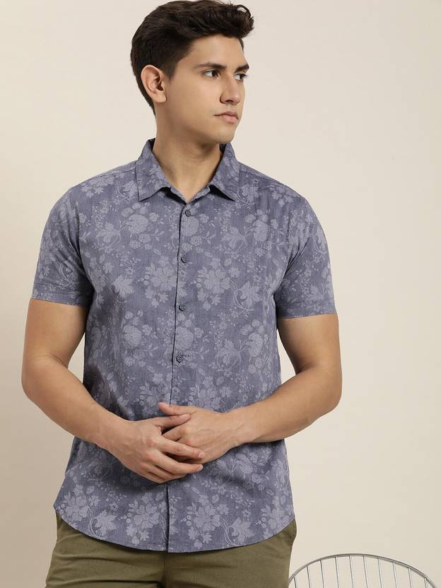 Men Slim Fit Floral Print Spread Collar Casual Shirt
