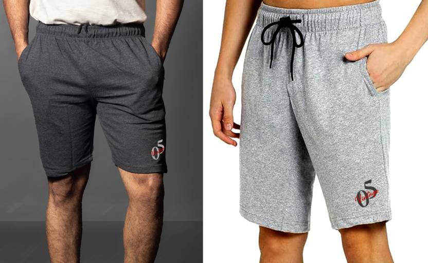 Pack of 2 Solid Men Grey, Silver Regular Shorts