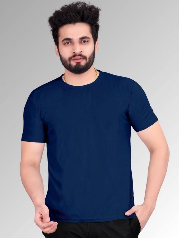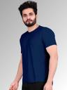 Men Solid Round Neck Polyester Dark Blue T-Shirt