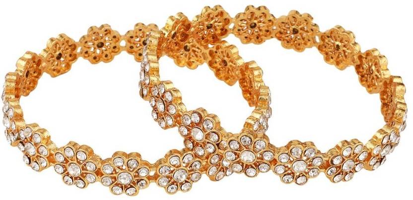 Gold Plated Floral Shaped Stone Studded Bangle_C