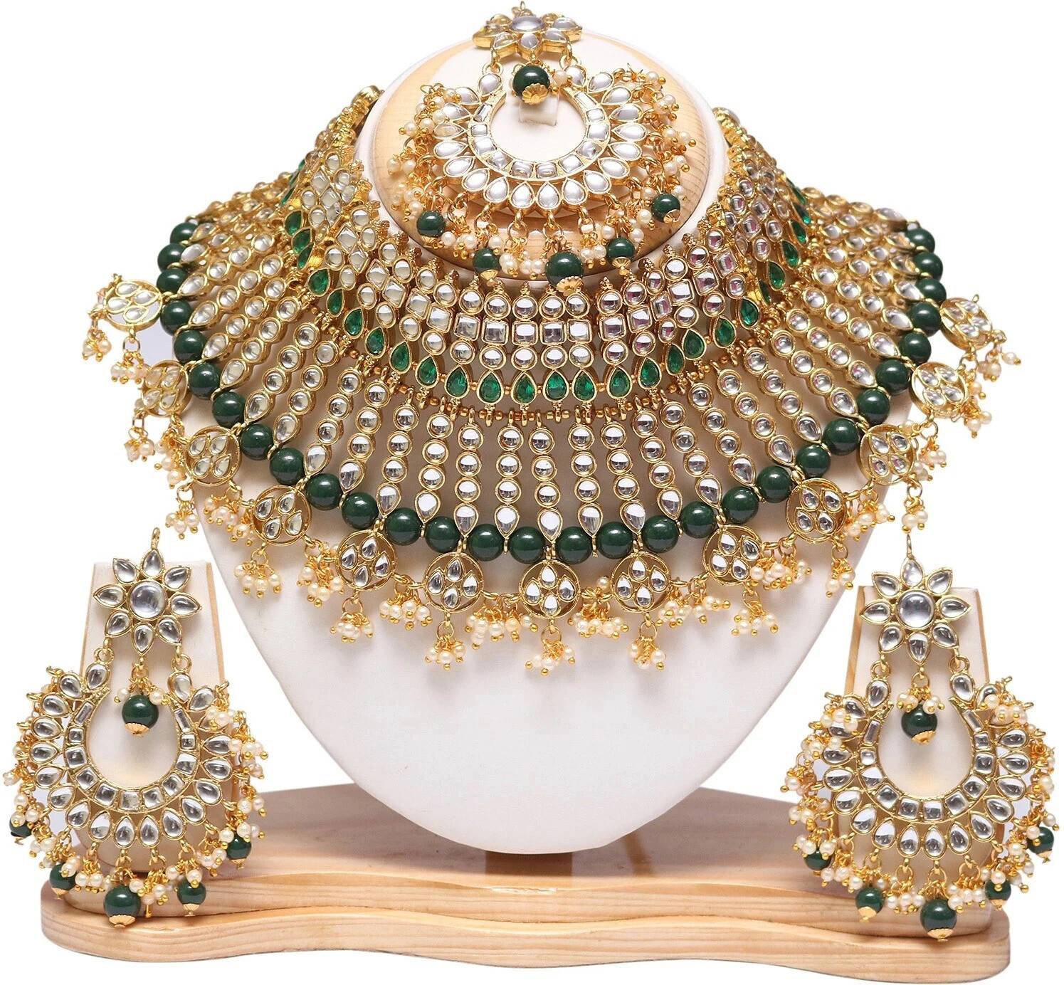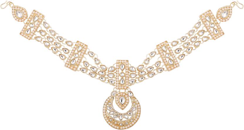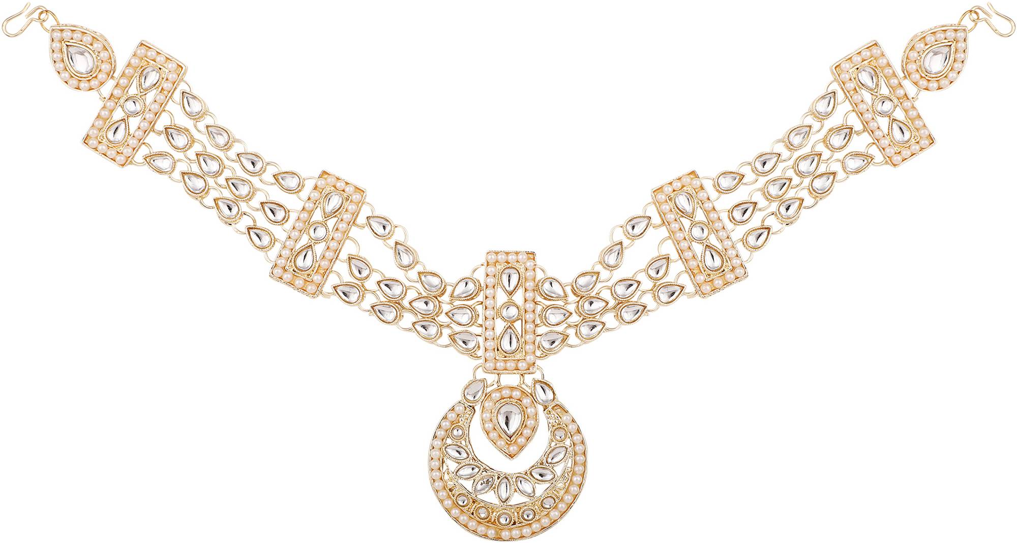 Traditional Gold Plated Heavy Ornamental Stone and Pearl Studded Maangtikka with Matha Patti attached for Women and Girls for Wedding, Bridal Wear,Party, Occasion, Family Function and Gifting Purposes.