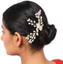 Contemporary Silver Plated Leaf Shaped White colored Pearl Studded Foldable Hair Accessory for Women and Girls.Women love jewellery; specially traditional jewellery adore a women. They wear it on different occasion. They have special importance on ring ceremony, wedding and festive time. They can also wear it on regular basics. Make your moment memorable with this range. This jewel set features a unique one of a kind traditional embellish with antic finish.