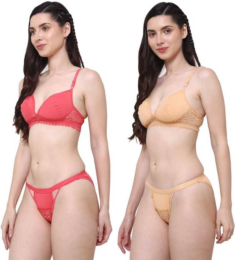 Mode Mingle Bra & Panty Set Self Design Multicolor Lingerie Set