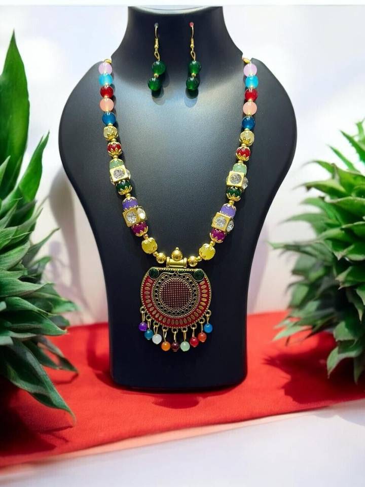The necklace features captivating design elements that add a touch of uniqueness to your ensemble From delicate patterns to carefully placed embellishments, each element is thoughtfully incorporated to create a harmonious and visually appealing jewellery set.
