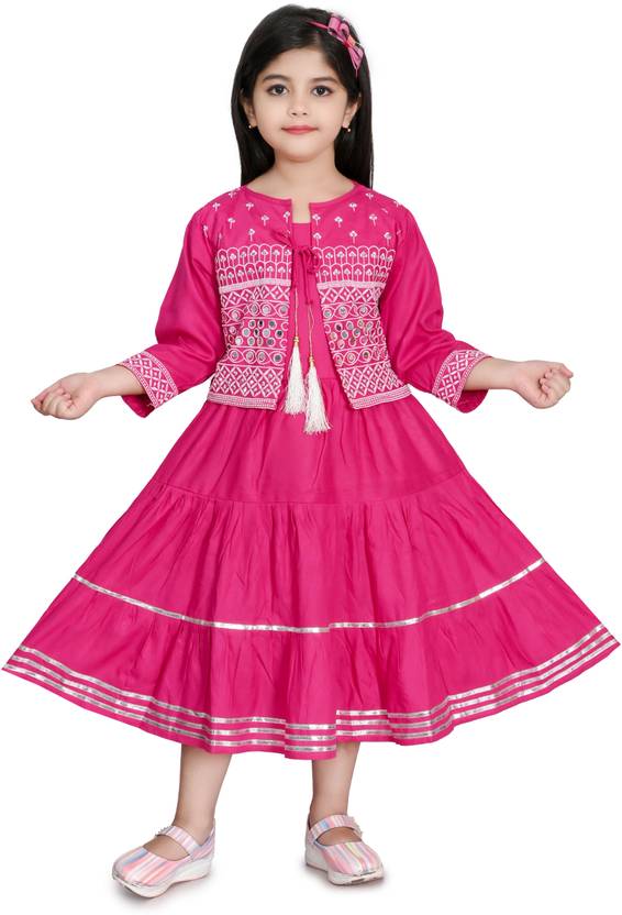 MODERN DREAM Indi Girls Calf Length Party Dress (Pink, 3/4 Sleeve)