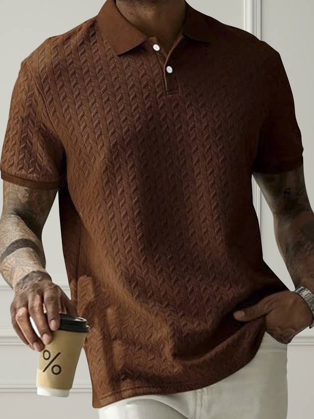The Modern Soul Solid Men Polo Neck Blue T-Shirt