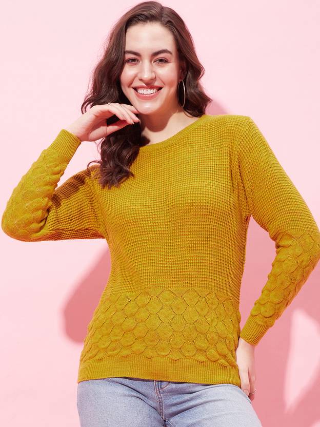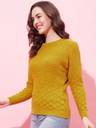 Stay in style during the chilly days of Winter by wearing this full sleeves sweater for women from the house of Modeve. Its finest wool blend fabric affirms sheer comfort all day long, keeps you warm yet gives you a stylish & elegant look. Featuring regular fit, this sweater is a class apart from others and a must have for your winter wear wardrobe. You can pair this sweater with faded denims, leather shoes or sneakers to complete your look. A quality product from the house of Modeve, known for its unique collection of designer Tshirts,Track Pants, Capris, Jackets, Shrugs,Ponchos, Sweaters,Sweatshirts,Pullovers & Cardigans.