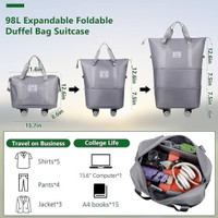 Designed with ample capacity, this duffel bag suitcase offers generous space for your belongings, while maintaining a compact cabin size. Besides clothing items for your travels, it can accommodate A4-sized books and laptops up to 39.63 cm, supporting both professional and academic purposes. Moreover, its expandable design supports flexibility to increase storage when needed, while the foldable structure makes it easy to store when not in use.