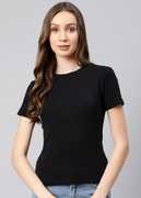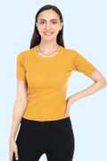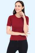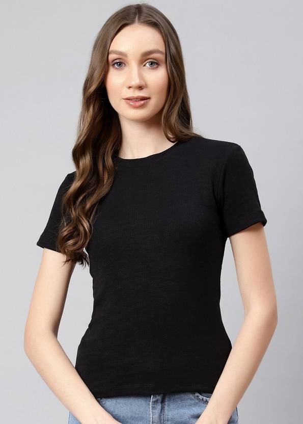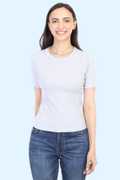 The round neck and short sleeve design make it a versatile piece for any casual outing or daily wear. Its solid pattern gives it a clean and minimal look, perfect for pairing with jeans, skirts, or joggers. Whether worn alone or layered under a jacket or shrug, this top is your go-to choice for effortless style and comfort.