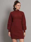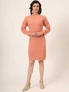 Stylish Women’s Jumper Dress in Solid Color, Beautifully Crafted with Cable-Knitted Turtle Neck Design.