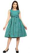 floral printed western dress has knee length and flared dress is available it can wear causual, party, function etc it is unique in pattern and sleeveless (short sleeve attached inside) is available fabric is soft so it is comfortable to all day.
