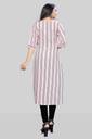 Fabric: Crepe Sleeve Length: Three-Quarter Sleeves Pattern: Striped Sizes: S (Bust Size: 36 in , Size Length: 46 in) XL (Bust Size: 42 in , Size Length: 46 in) L (Bust Size: 40 in , Size Length: 46 in) XXL (Bust Size: 44 in) M (Bust Size: 38 in , Size Length: 46 in)