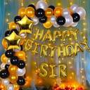 MODO Happy Birthday Decorations Kit For Teacher (SIR) - Gold Black & Silver theme for Birthday Party Decorations - Happy B'day Foil Banner Gold, Gold Black and Silver Metallic Balloons and SIR (3 Letters)Foil Balloons Golden, Stars Foil Balloons with Fairy LED Light Combo (Set of 79)