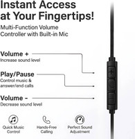 Featuring a wired design, these earphones provide instant access to your music and calls at your fingertips. The multi-function volume controller allows you to increase or decrease sound levels, play or pause music, and answer or end calls without reaching for your device. In addition, the inbuilt microphone enables hands-free calling, while noise cancellation of up to 10 dB ensures clear audio in various environments. Along with this, the flat wire design reduces tangling, making these earphones easy to use and store, and offering sound adjustment.
