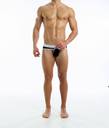 An exciting combination of black and white fabrics. An underwear that can be unbuttoned so you don't need to take it off! The perfect briefs for underwear and sex parties.