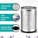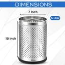 Mofna Stainless Steel Perforated dustbin, Garbage Bin Trash can with Removable lid Round Shape Silver Color (Set of 1) Slim and Fingerprint-Proof Finish Diameter x Height- (7X10-5 Liter) Stainless Steel Dustbin (Silver)