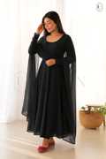 Solid Georgette Stitched Anarkali Gown (Blue)