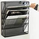MOHAK 5 Compartments Metal Mesh Wall Mount Paper Letter Shelf Metal Vertical File Rack (Black)