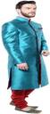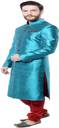 This Royal Blue Sherwani is made using Pure Raw Silk Fabric. It is embelished with exquisite maroon piping on the neck and the front panel. The Trendy buttons & Churidar of same maroon shade adds glamour to the dress. This dress is ideal for any kind of party or for festive needs.