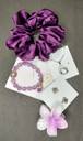1 Scrunchy, 1 Medium claw clip, 1 oxidized studs, 1 charm bracelet, 1 Pendant