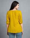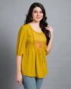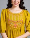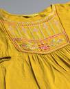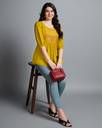 Walk in admirable energy by styling this lovely Mustard Embroidered Rayon Top by MOJILAA. The Mustard rayon top has floral embroidery on the yoke, round neck, gathered, and front lace detailing. Pair it with light blue or white denim for a chic look.