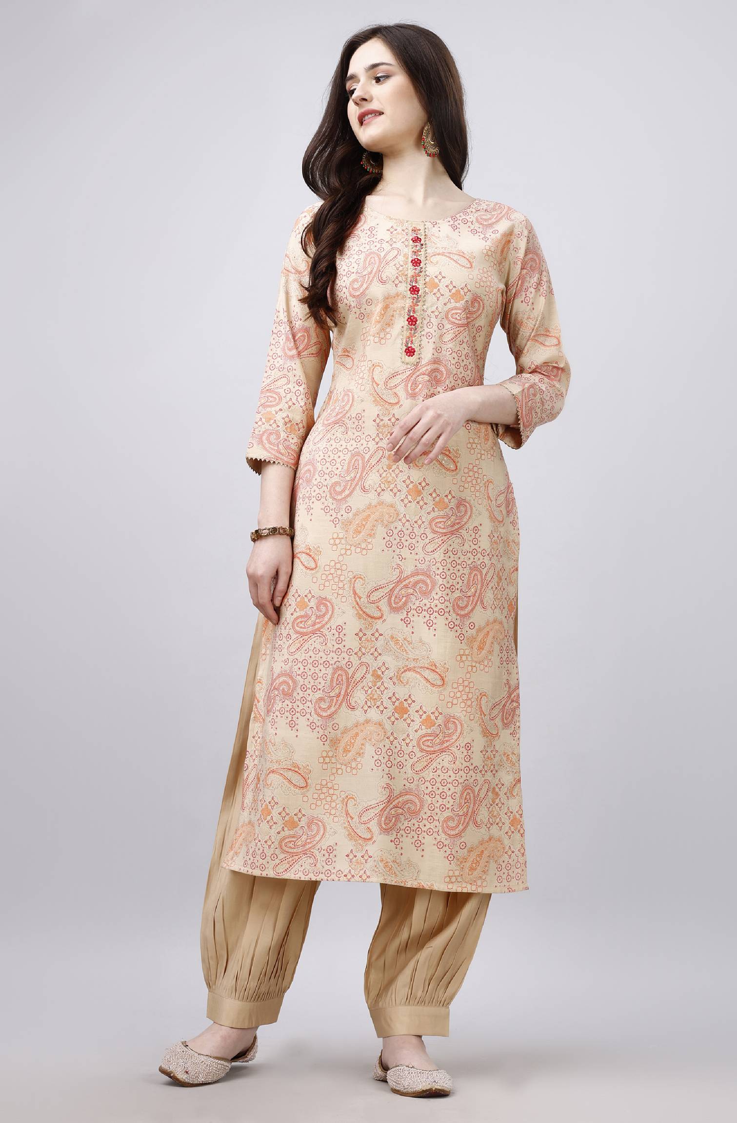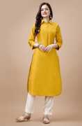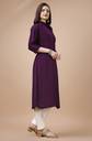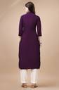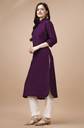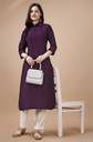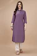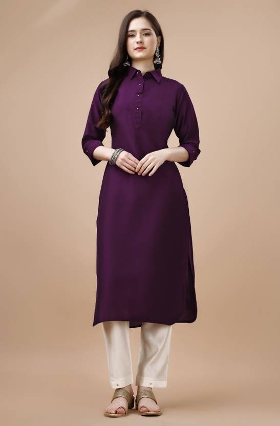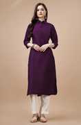 Elevate your fashion and glamour quotient with this purple pathani kurta from MOJILAA. It is made from high quality chinon silk fabric and stays strong against the skin. This regular fit pathani kurta has three-quarter roll-up sleeves, solid pattern, golden beads detailing on yoke placket and a shirt collar that make it a comfortable wear. Pair it with a pants or leggings.
