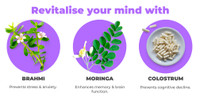 This potent formulation is made using top-grade Ayurvedic ingredients like Brahmi, Moringa, and Colostrum which have been used for centuries for their power to enhance brain functioning and stimulate the brain.