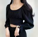 Casual Roll Up Sleeves Solid Women Dark Blue Top