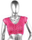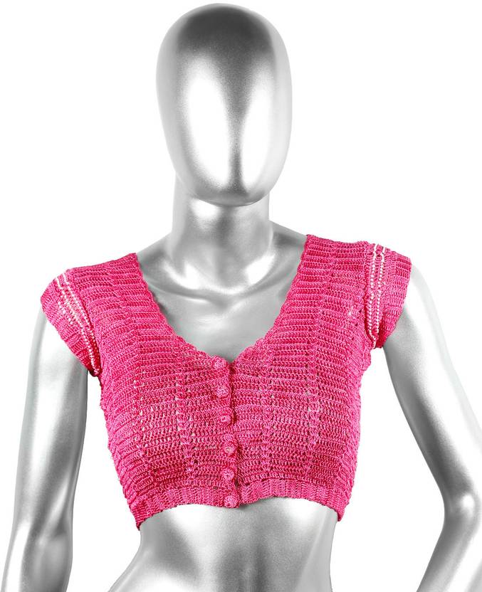 Fallen from heaven, this pink blouse is specially made for a romantic evening to make it unforgettable. A gorgeous Designer Crochet Blouse with beads and two multilayer motifs at the back, one over each shoulder. One multilayer motif with embellishment at the back gives a lovely appearance. Six show-buttons in the front, covered with Crochet, and threads for knot at the back. Note: No lining work for Crochet Blouses, so we recommend you wear a sports bra (or) a matching color cotton sleeveless blouse underneath.