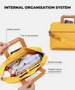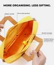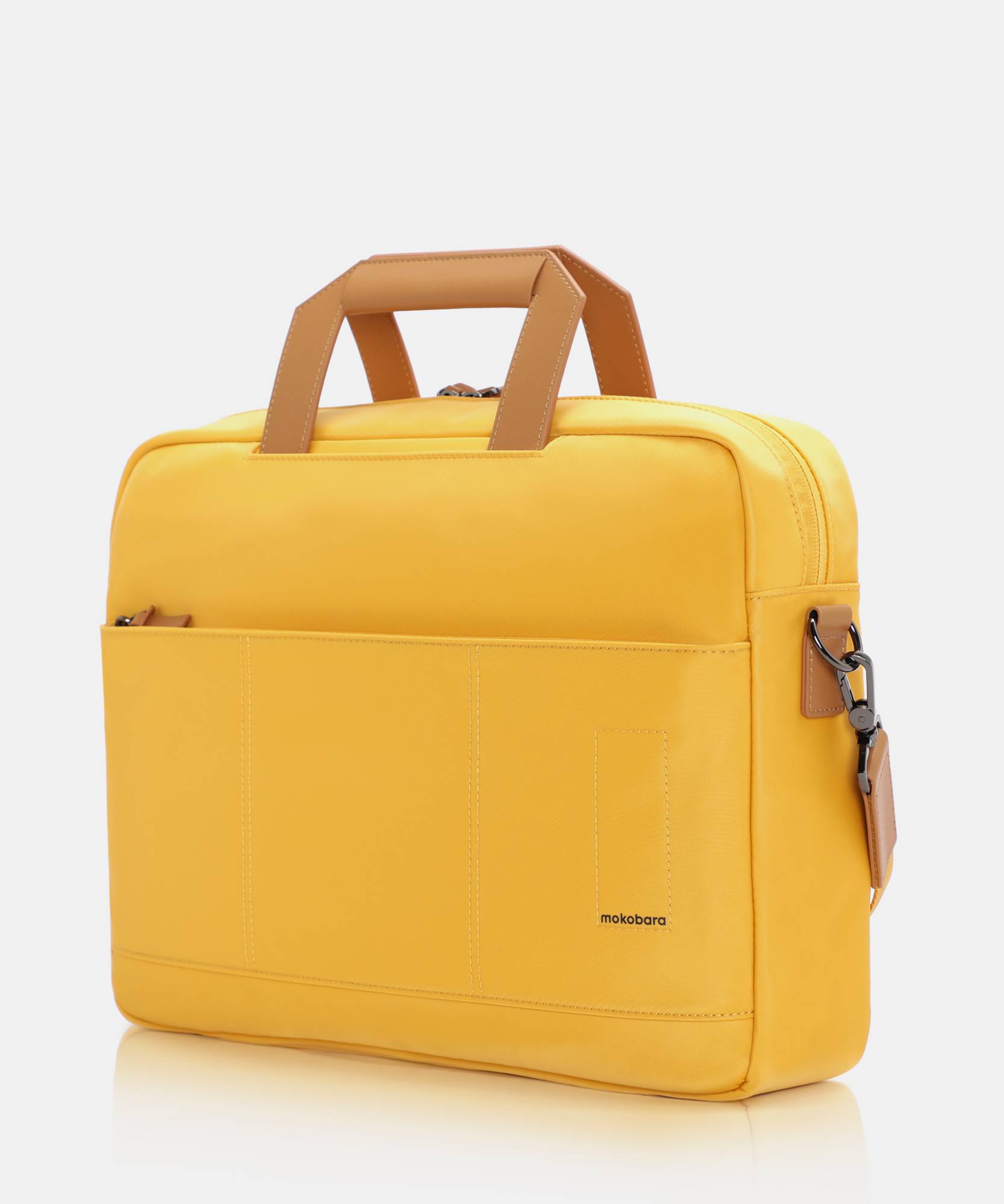 Meet The Briefcase, crafted with premium vegan leather and a water resistant nylon fabric. It has a padded laptop compartment which can easily fit a 16” , with a lock strap. The interior organisation system has pen pockets, slip pockets and a zippered pocket that secures your wallet or documents. It has body blending pockets on both the front and back, to give you quick access to your phone or boarding pass. It also has a luggage sleeve which lets you strap it on to your luggage and travel with ease! The detachable shoulder strap lets you carry The Briefcase in two ways!