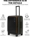 The luggage has a great design, and the color is excellent. However, the front compartment can be a bit hard to open at times. Overall, I'm satisfied with the purchase.