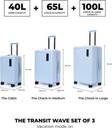 Meet the Transit Wave Luggage. This set consists of the Transit Wave Cabin + the Transit Wave Check-in + the Transit Wave Check-in Large. It packs for a 30+ day trip.