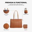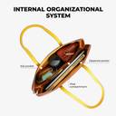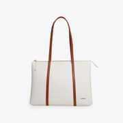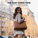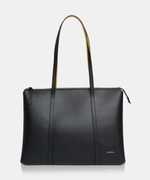 Meet The Easy Going Tote, our most versatile tote ever. Perfect for carrying to the mall, to dinner and everything in between. Crafted with a water-resistant vegan leather on the exterior and polyester fabric on the interior. It’s got vegan leather trims on the drop handles to ensure easy carrying. It is super roomy, and has an interior organisation system with a zippered pocket, a tech sleeve and a divider pocket. It easily fits a 14” laptop. The tech sleeve easily stores your adapters, kindle and polaroids. The divider doubles up as a handy pocket and is perfect for storing all your knick-knacks. It’s also got a hidden back pocket designed to give you quick access to your phone, passport or boarding pass. It has a luggage sleeve that easily slides over the luggage handle. At the bottom you’ll notice the bag feet. This keeps the base of the tote tidy.