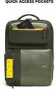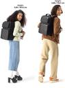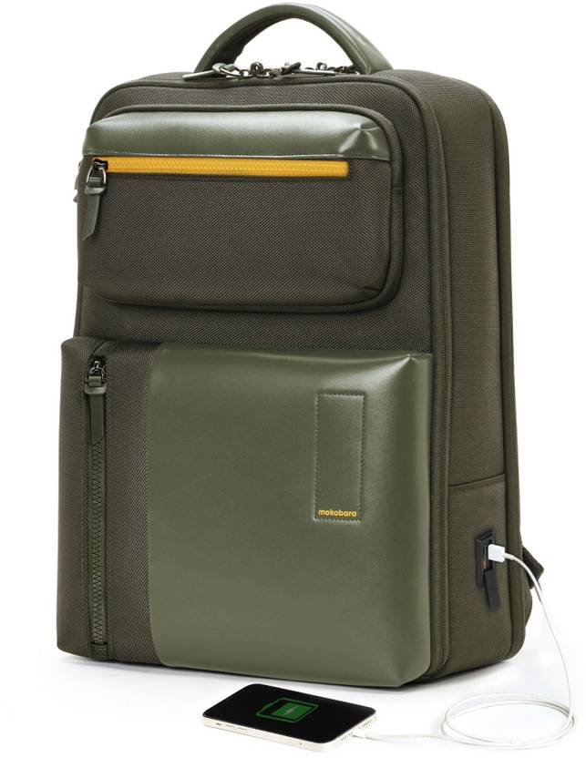 Meet The Work Backpack, a master of organisation. Crafted with premium vegan leather and a water resistant nylon fabric. The front bucket compartment houses slip pockets, pen pockets, a document pocket and a zippered pocket, to help you access all your work essentials in a single reach. It also has an independent tech compartment with a 180 degree flat opening for quick access. It has a padded laptop compartment with a lock strap that can fit a 16” laptop. It also has 5 pockets to store all your other tech essentials like your iPad and adapters. It has a USB charging port on the side, so you never have to worry about your battery running out! On the front, you’ll find two zippered compartments for quick access to documents and other knick knacks. It comes with a hidden and expandable water bottle compartment on the side. On the back you’ll find the signature Mokobara magnetic closure pocket, that snaps close to secure your phone or passport. It also has a luggage sleeve that makes it easy to strap it on to your luggage and travel with ease.