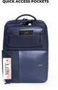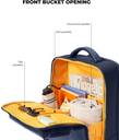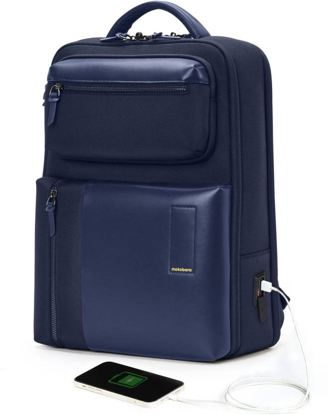 Meet The Work Backpack, a master of organisation. Crafted with premium vegan leather and a water resistant nylon fabric. The front bucket compartment houses slip pockets, pen pockets, a document pocket and a zippered pocket, to help you access all your work essentials in a single reach. It also has an independent tech compartment with a 180 degree flat opening for quick access. It has a padded laptop compartment with a lock strap that can fit a 16” laptop. It also has 5 pockets to store all your other tech essentials like your iPad and adapters. It has a USB charging port on the side, so you never have to worry about your battery running out! On the front, you’ll find two zippered compartments for quick access to documents and other knick knacks. It comes with a hidden and expandable water bottle compartment on the side. On the back you’ll find the signature Mokobara magnetic closure pocket, that snaps close to secure your phone or passport. It also has a luggage sleeve that makes it easy to strap it on to your luggage and travel with ease.